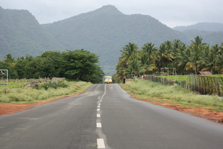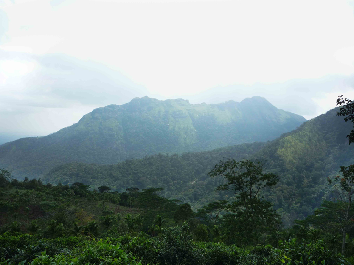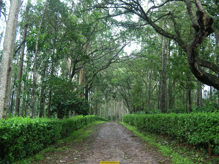 On the way to Ponmudi, the thick tropical forest greets one at the foot of the Ponmudi hill range. The road passes under a canopy of thickly matted foliage. The forest recedes gradually giving way to neatly clipped tea bushes. As one leaves the city behind, one enters the region of plantations - rubber, pepper, cardamom and tea. The change is abrupt. The tappers can be seen going about briskly gathering the milky fluid from rubber trees collected in coconut shells. Coconut thatch mats cover almost one half of the road, over which women spread black pepper for drying. One may come across a lone elephant ambling along carrying his mahout atop and his breakfast of coconut thatch in his trunk.